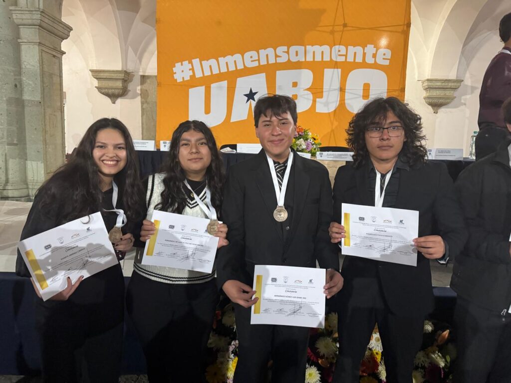 Nuestros destacados alumnos son Moisés Rodríguez Chávez de la Preparatoria Técnica Álvaro Obregón, Victoria Abigail Fernández de Lara de la Preparatoria 4 y Camila Duarte Jiménez de la Preparatoria Técnica Médica, ellos obtuvieron medalla de dorada en esta competencia académica. Enhorabuena para la Delegación de Biología del Estado de Nuevo León.